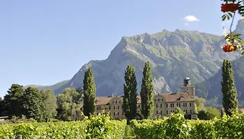 Die Villa Das gesamte Hotel Schloss Wartenstein mit allen 10 Zimmern mit Bad und dem Restaurant Bad Ragaz verfügt über Parkplätze und eine Terrasse mit Aussicht auf die Berge.